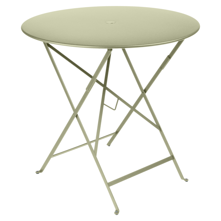 フランス製屋外家具ビストロラウンドテーブル77H ウィローグリーン パラソルホール付き