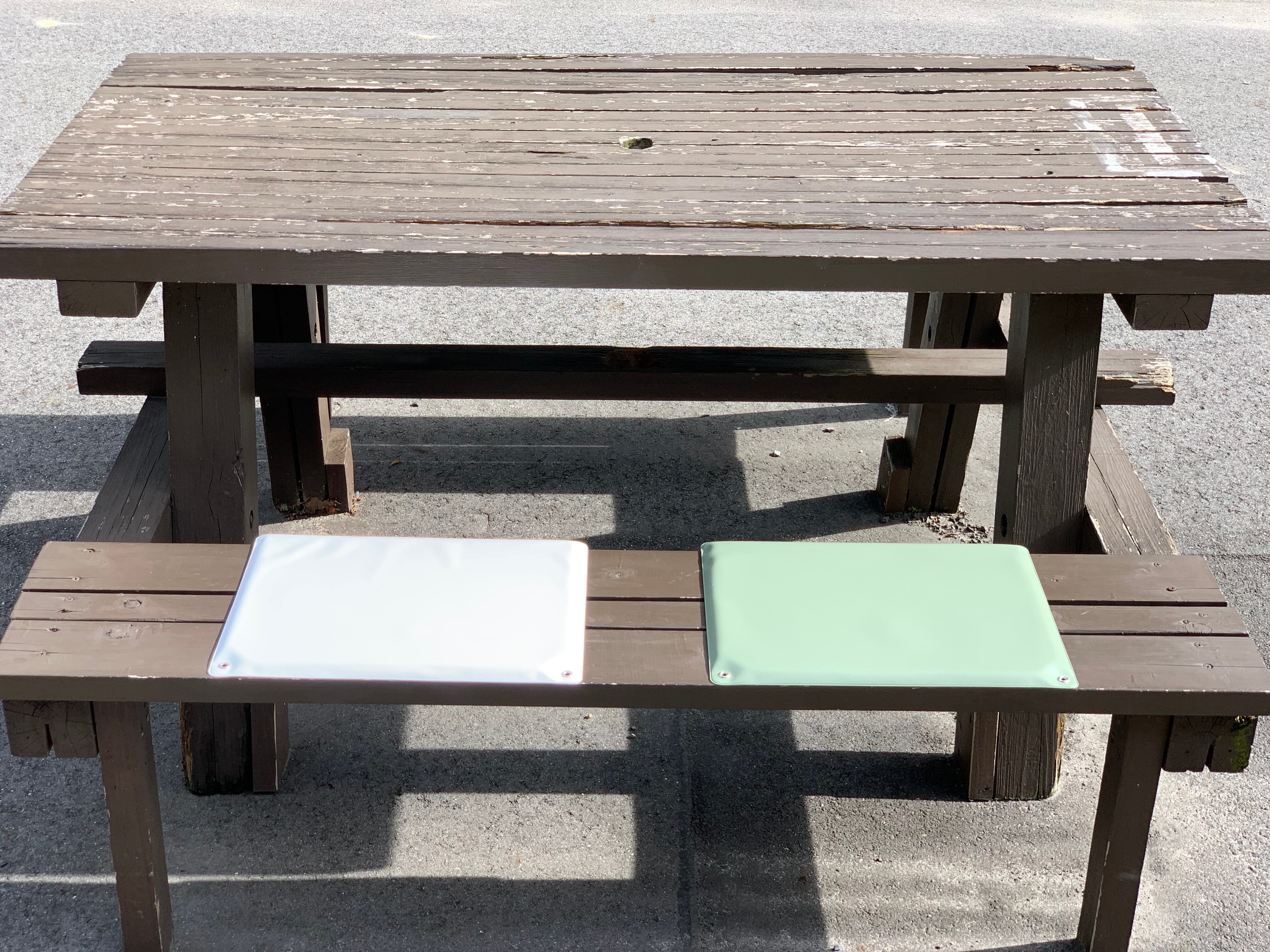 ビストロチェアはスチール製のため夏の日差しで座面が熱くなり、冬は冷たさを嫌がるお客様も多いため、手軽に使えるビストロチェア用のクッションを国内開発しました.カラーは、ベーシックなホワイト、
