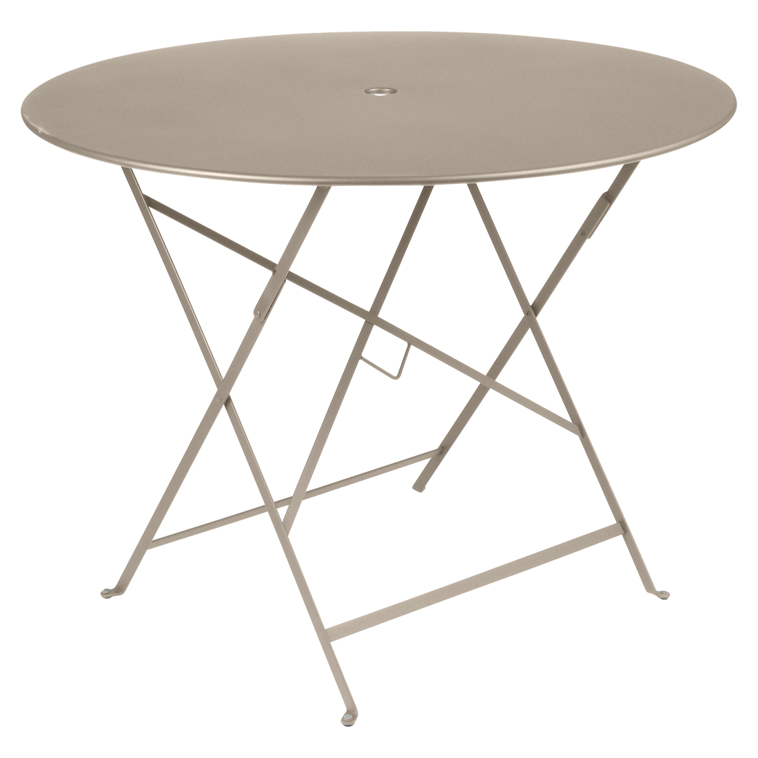 フランス製屋外家具ビストロラウンドテーブル96H ナツメグ パラソルホール付き